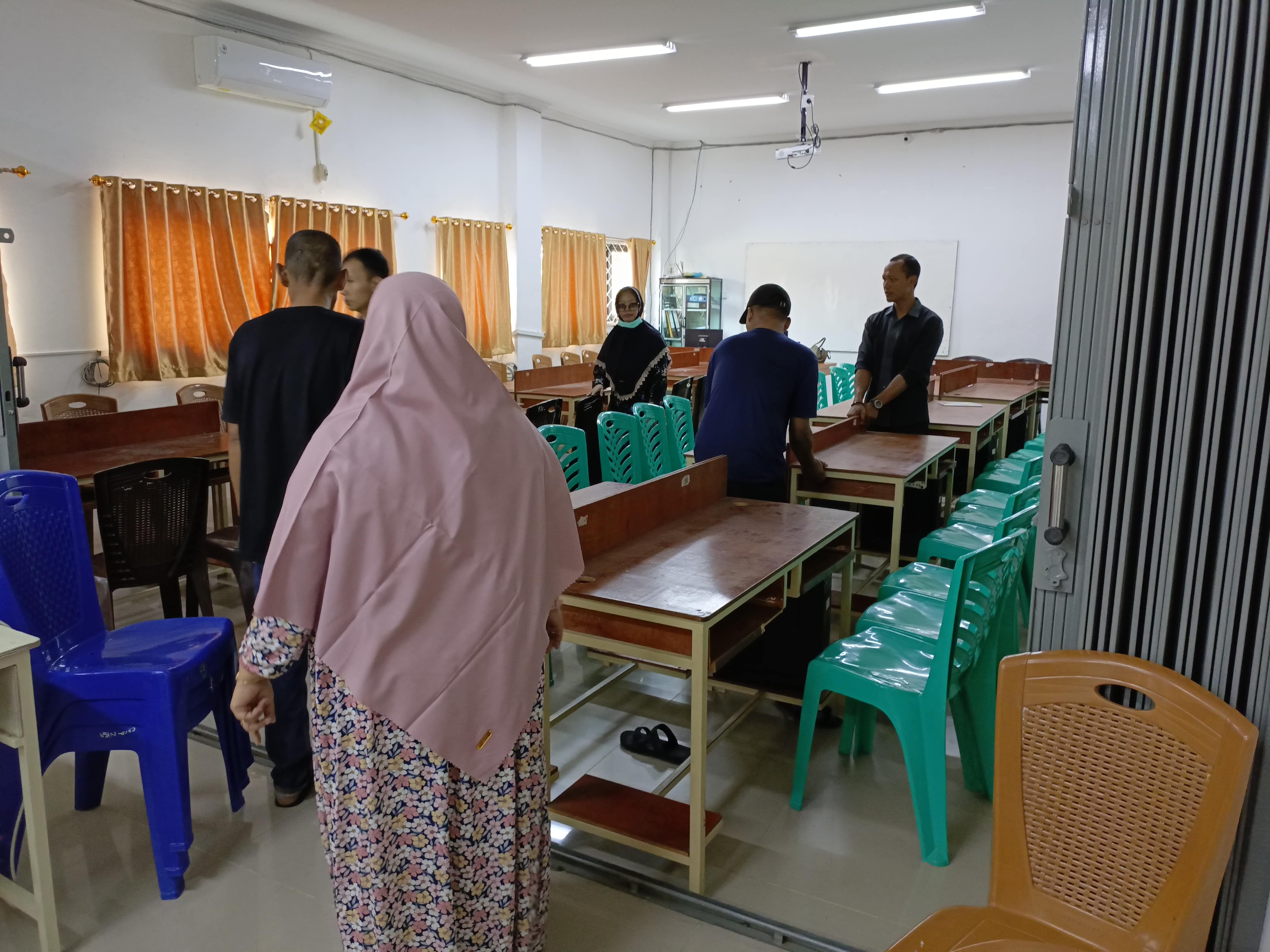 Untuk mendukung kelancaran semua perangkat telah dipersiapkan oleh Tim IT Madrasah Tsanawiyah Negeri 2 Kota Jambi, mulai dari meja, kursi, instalasi dan prasarana lainnya.