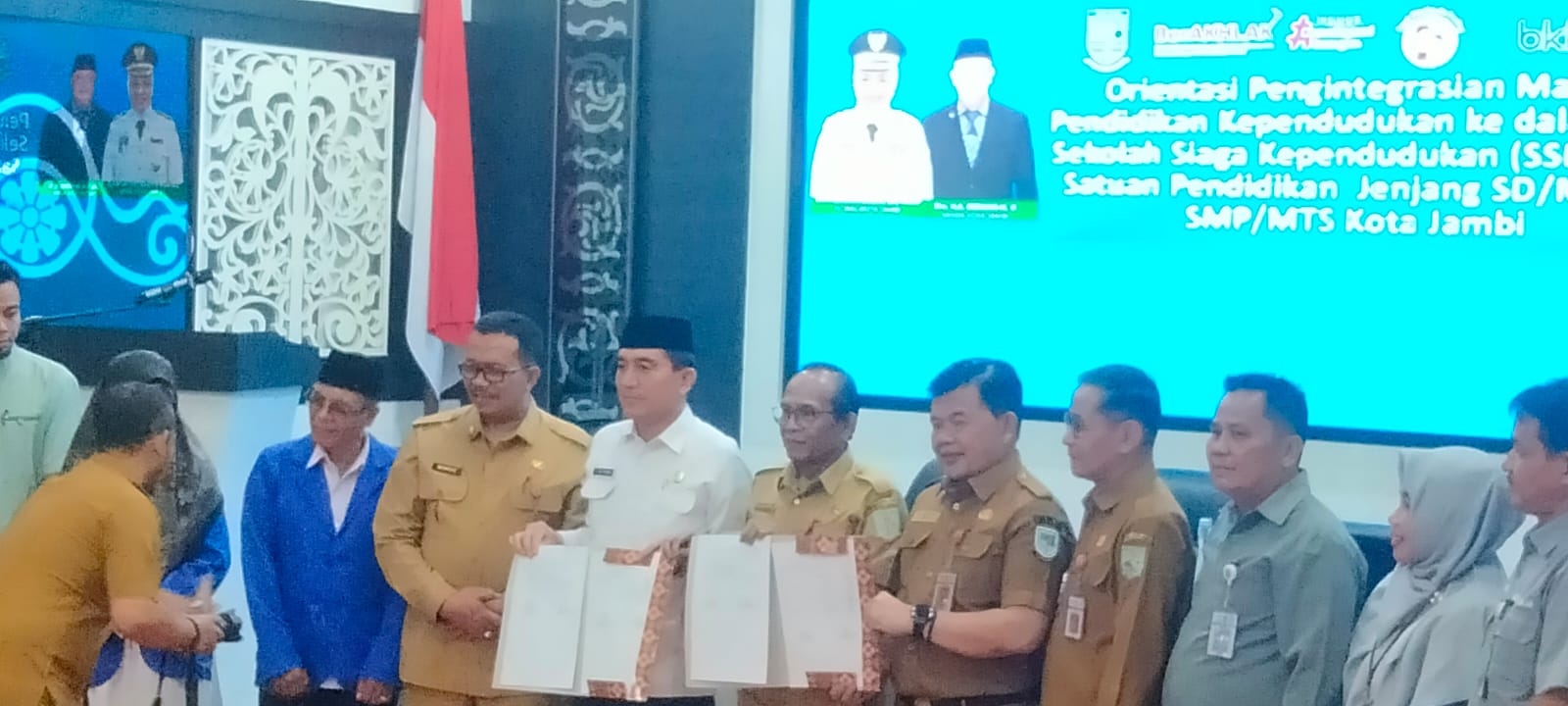 Bertempat di Aula Bappeda Kota Jambi, Madrasah Tsanawiyah Negeri 2 Kota Jambi mengikuti kegiatan orientasi pengintegrasian materi pendidikan kedudukan kedalam RPP Sekolah Siaga Kependudukan (SSK) pada satuan pendidikan jenjang SD/MI dan SMP/MTS kota Jambi, dibuka oleh Kepala Stap Ahli Bidang Pemasyarakatan dan SDM Kota Jambi, serta penanda tanganan kesepakatan Sekolah Siaga Kependudukan (SSK).