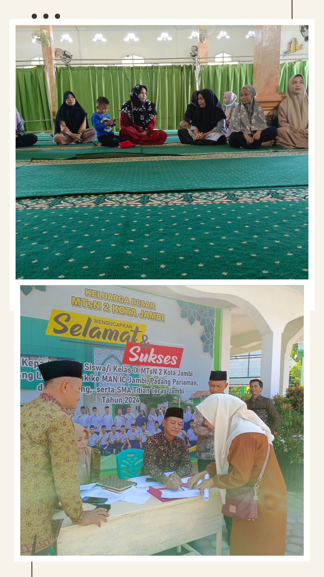 Rabu, 24 Juli 2024, Pengurus Komite Madrasah Tsanawiyah Negeri 2 Kota Jambi menggelar silaturahmi bersama orang tua murid kelas 7 dan kelas 8, dalam pertemuan itu Pengurus Komite Madrasah Tsanawiyah Negeri 2 Kota Jambi mengucapkan terima kasih terhadap partisipasi dan sumbangsih kepada wali murid/orang tua siswa kelas 7 dan kelas 8, terhadap pengembangan terutama percepatan pengembangan pendidikan dan pengajaran yang ada di Madrasah Tsanawiyah Negeri 2 Kota Jambi, semoga kedepannya kerja sama ini dapat ditingkatkan lagi.