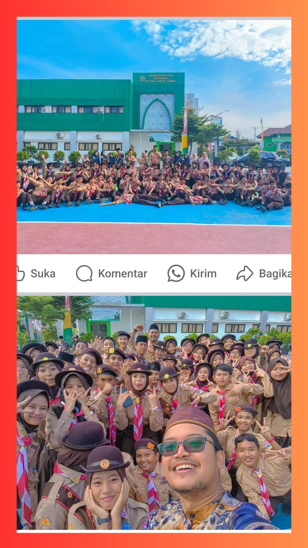 Madrasah Tsanawiyah Negeri 2 Kota Jambi 14-08-2024 di lapangan Madrasah Tsanawiyah Negeri 2 Kota Jambi melaksanakan upacara memperingati hari pramuka sebagai bentuk rasa cinta tanah air yang berjiwa pancasila "SELAMAT MEMPERINGATI HARI PRAMUKA 2024" PRAMUKA BERJIWA PANCASILA MENJAGA NKRI