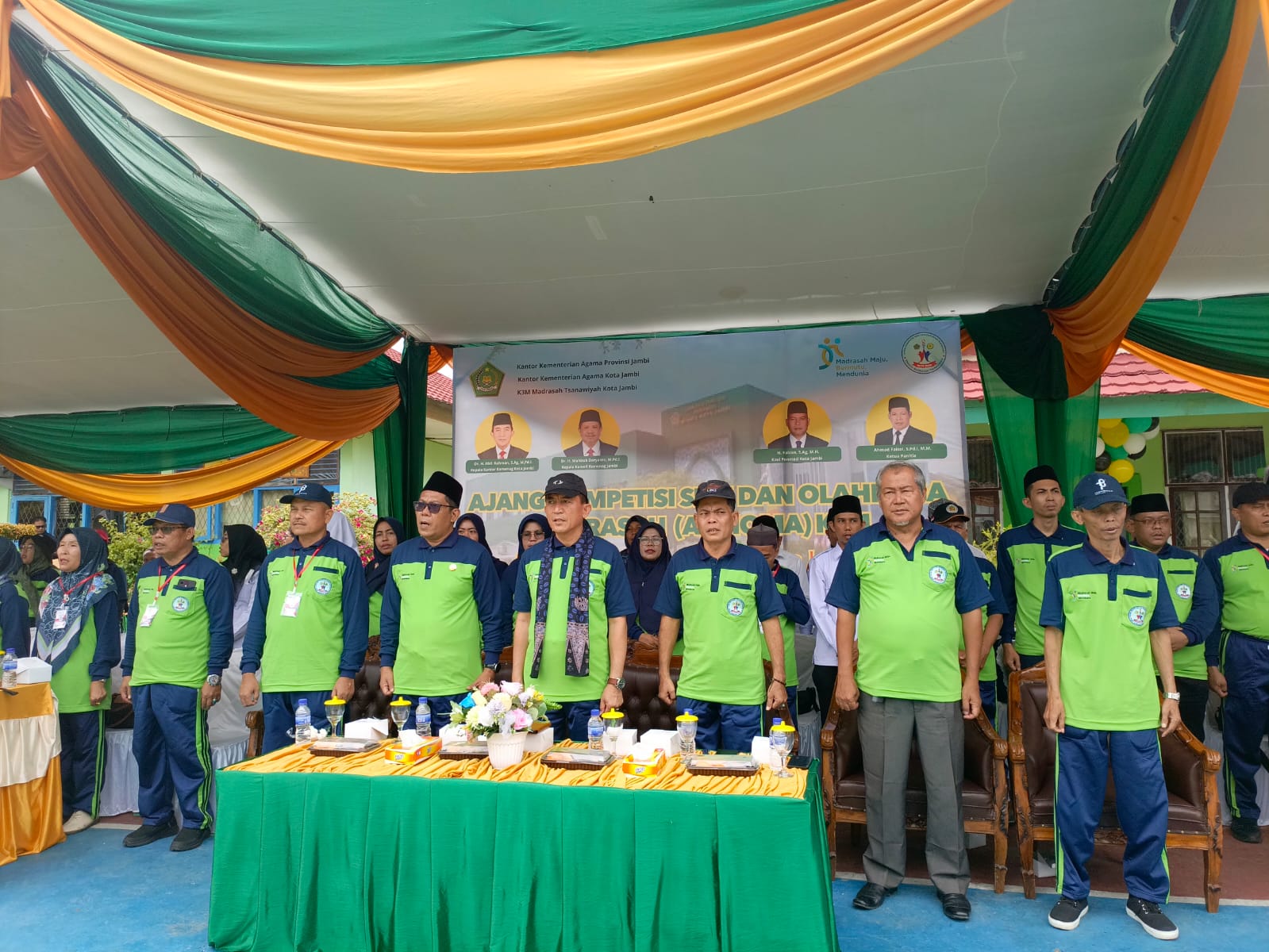 Kepala Kantor Kementerian Agama Kota Jambi Dr. H. Abd Rahman, S.Ag., M.Pd.I. membuka secara resmi kegiatan Ajang Kompetisi Seni dan Olahraga Madrasah (AKSIOMA) Tingkat Kota Jambi yang dilaksanakan di Madrasah Tsanawiyah Negeri 2 Kota Jambi, Senin(4/11/2024).