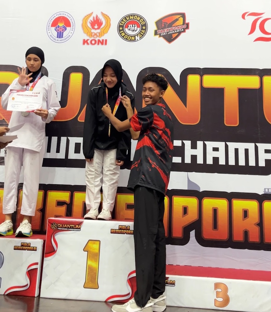 Kota Jambi (MTsN 2) – Siswi kelas 9I dari MTsN 2 Kota Jambi, kembali mencatatkan prestasi luar biasa di Kejurnas Quantum Taekwondo Championship Piala Kemenpora RI 2024. Berkat kegigihannya, Miranda Anugrah Putri berhasil membawa pulang medali emas dalam kategori Cadet Prestasi Putri. Kejuaraan ini digelar di Pendopo Pencak Silat TMII, Jakarta, dengan partisipasi 773 atlet dari lima provinsi di Indonesia.