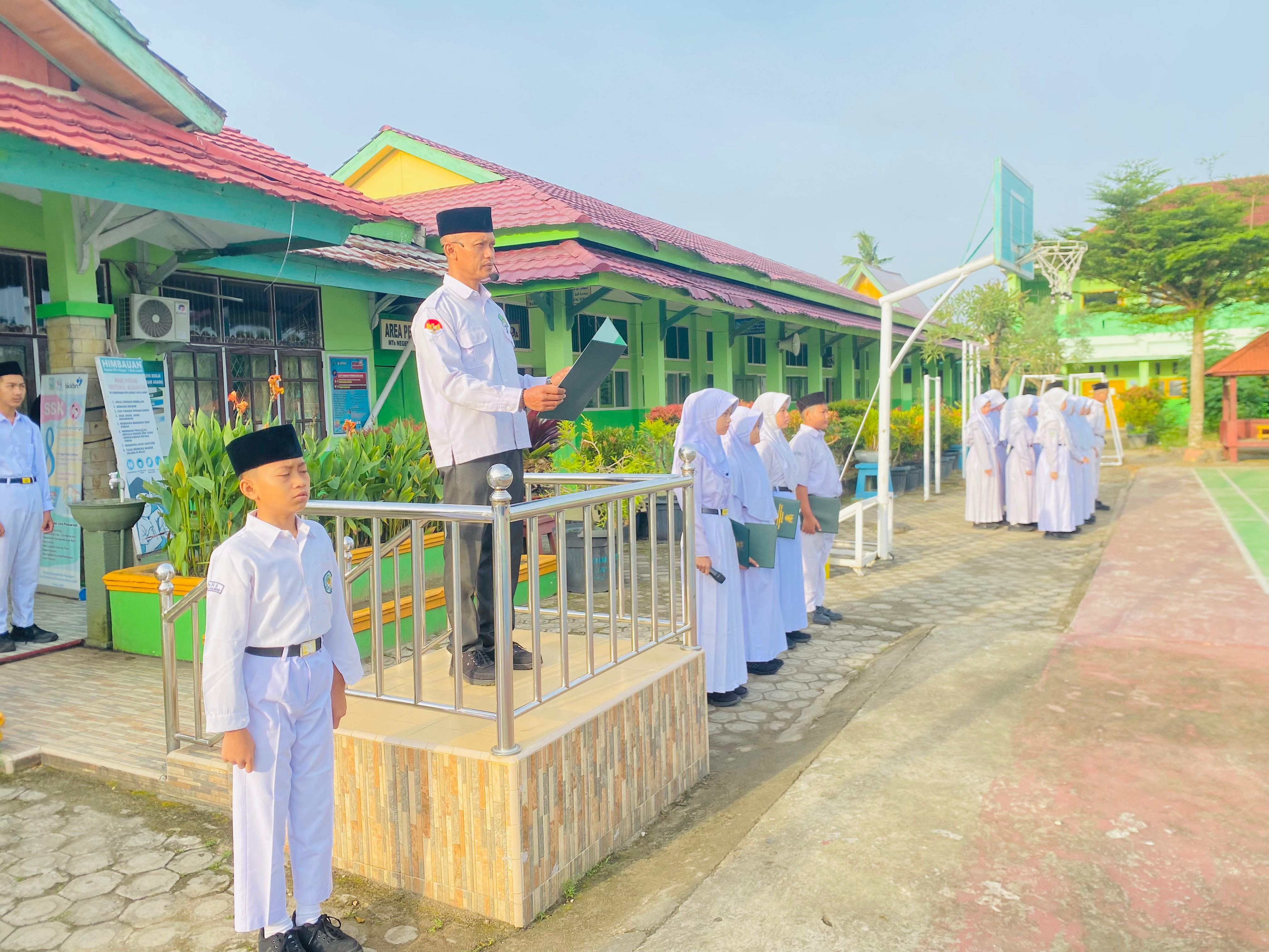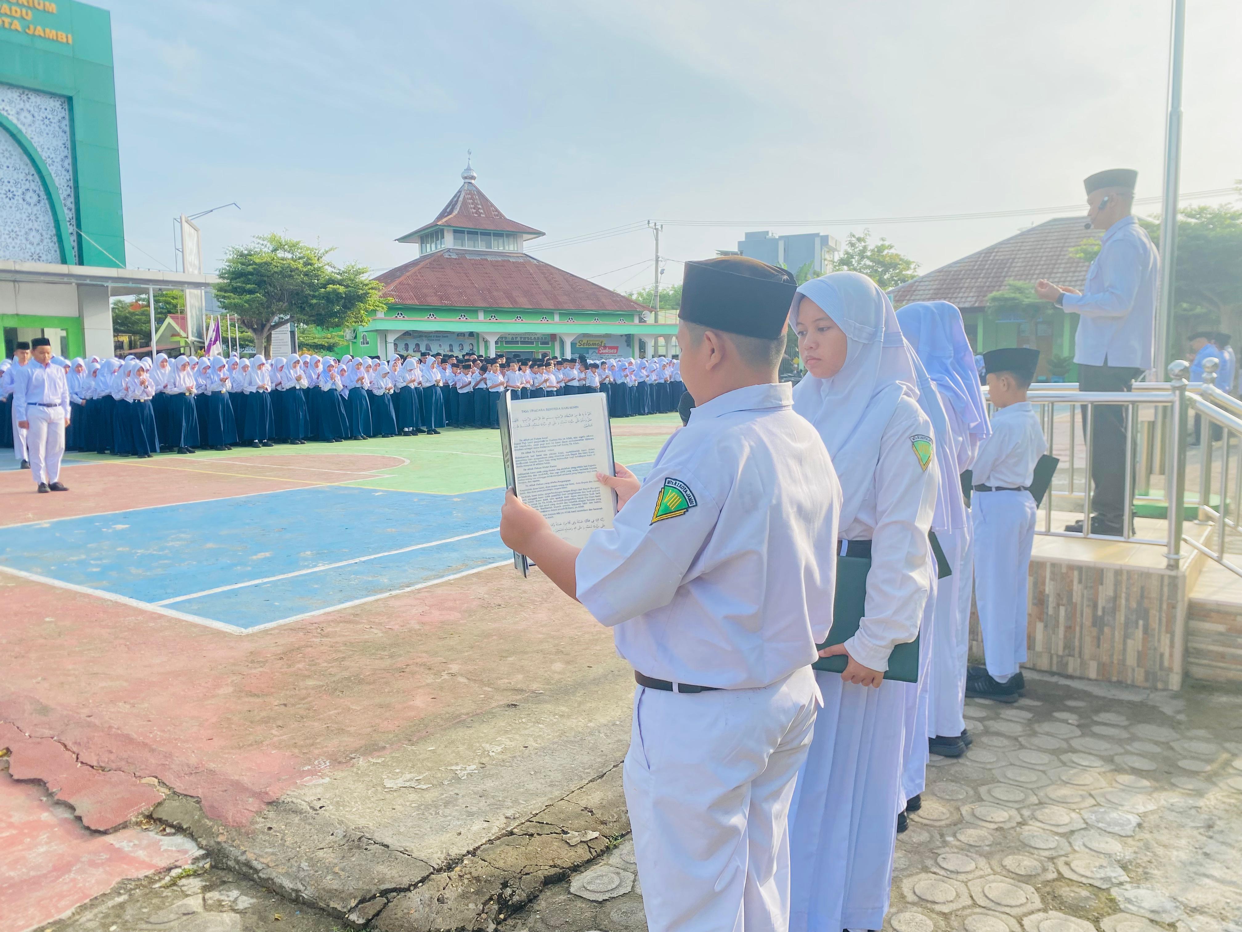 Kota Jambi (MTsN 2) – Hari Senin (10/2) MTsN 2 Kota Jambi menggelar upacara rutin pada di lapangan madrasah dengan penuh khidmat. Upacara yang diikuti oleh peseta didik, guru, dan staf ini dipimpin oleh petugas dari kelas 8I, yang menjalankan tugas dengan tanggung jawab.