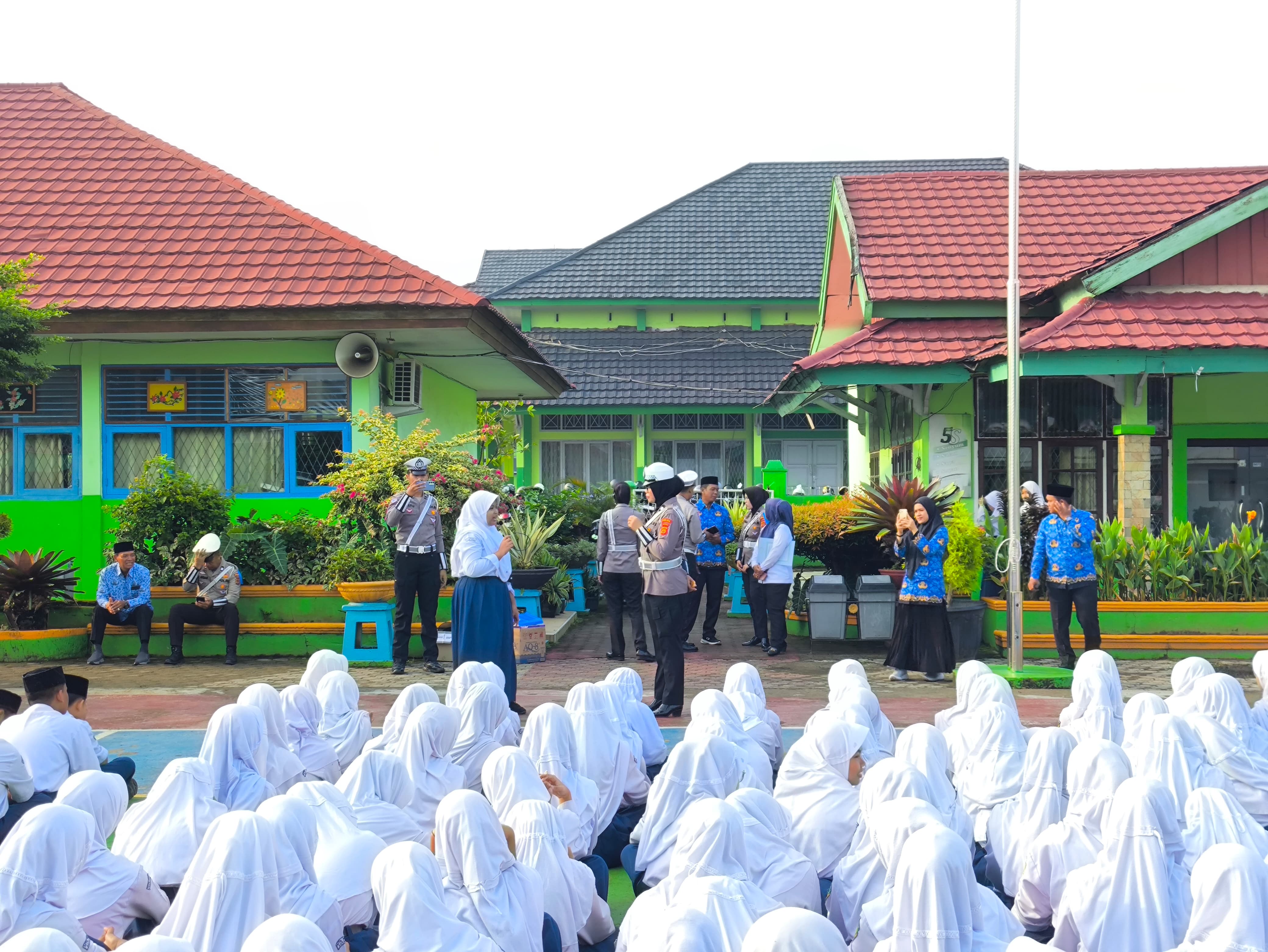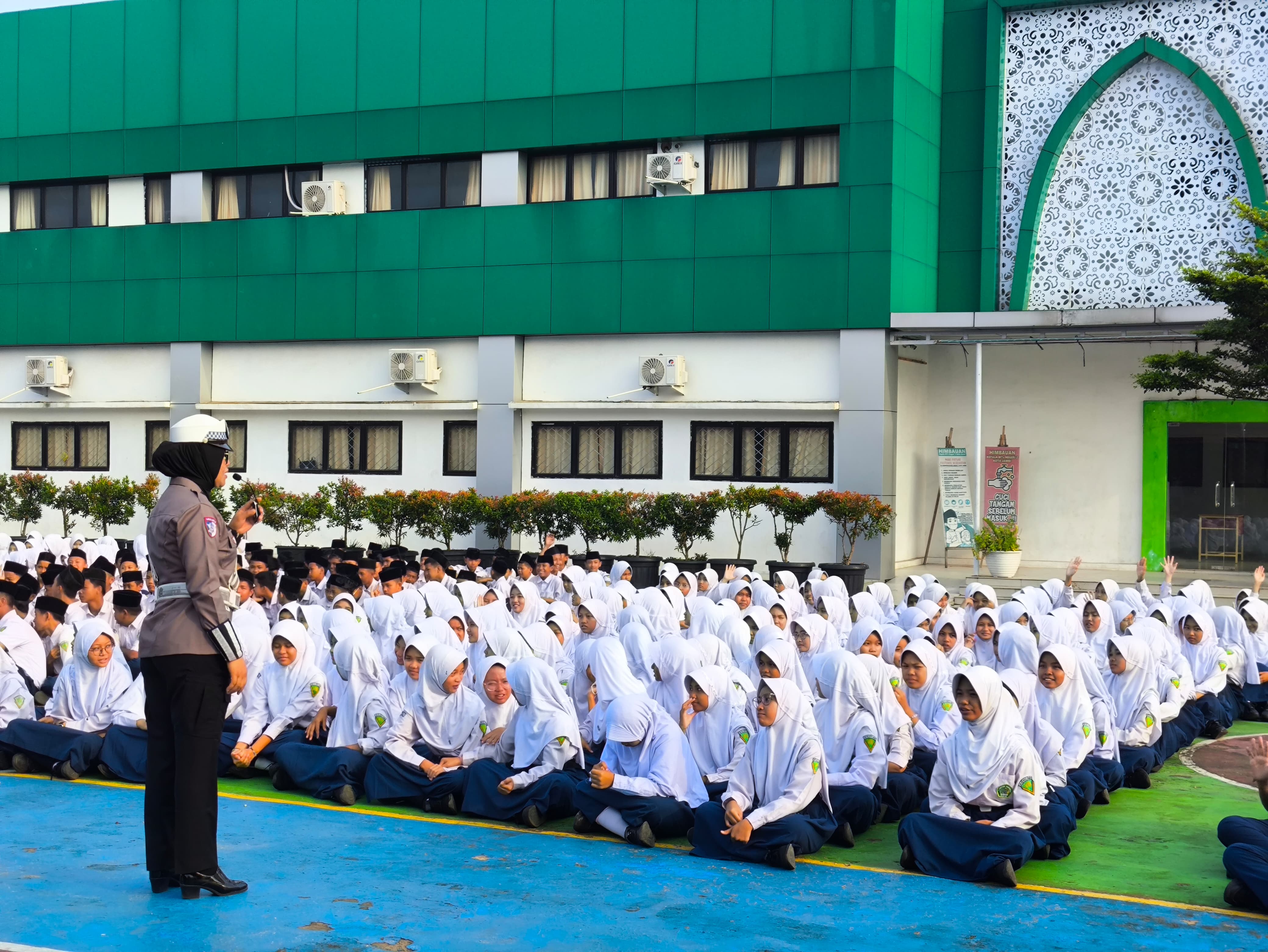 Kota Jambi (MTsN 2) - Senin (17/02/2025), setelah upacara bendera, MTsN 2 Kota Jambi mengadakan sosialisasi keselamatan berkendara yang dipimpin oleh Aiptu Yeni dari Ditlantas Polda Jambi. Kegiatan ini bertujuan untuk memberikan pemahaman kepada siswa mengenai pentingnya keselamatan saat berkendara di jalan raya.