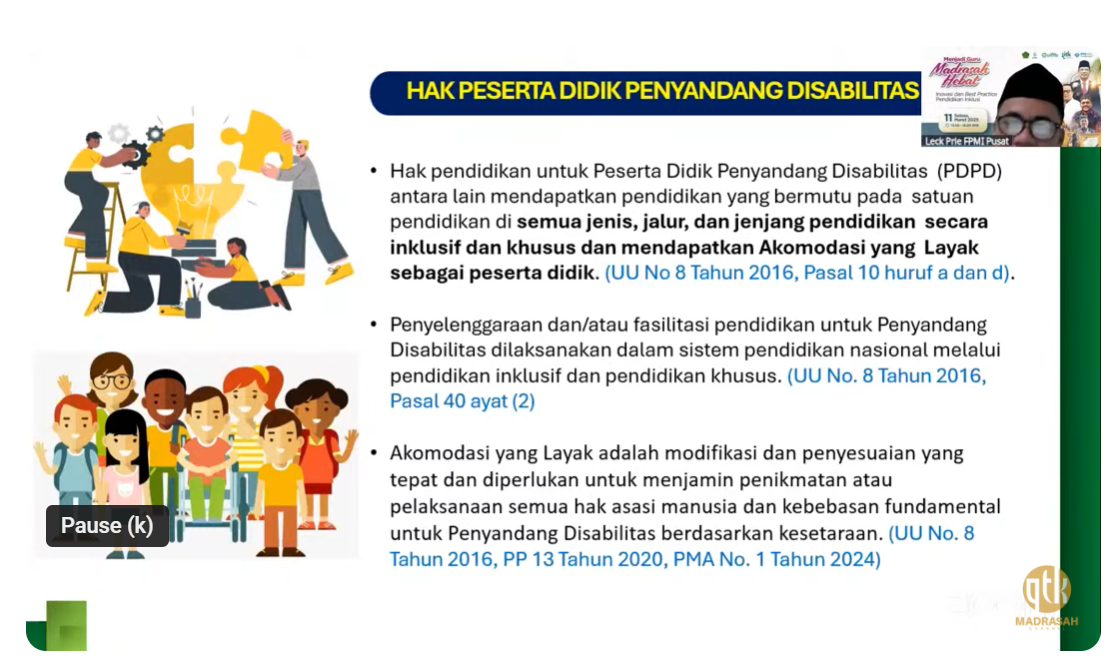 Kegiatan ini memberikan wawasan yang berharga bagi para guru mengenai inovasi dan praktik terbaik dalam pendidikan inklusi di madrasah. Diharapkan webinar ini dapat menginspirasi para pendidik untuk terus berupaya menciptakan lingkungan belajar yang inklusif dan ramah bagi semua peserta didik. (JLM)