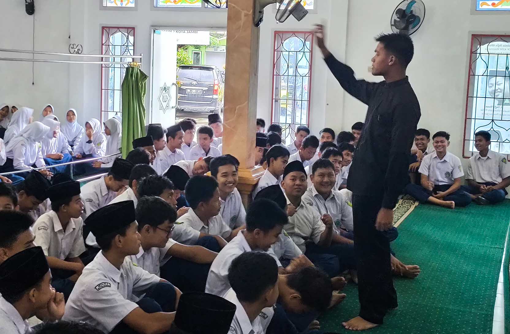 Kota Jambi (MTsN 2) - MTsN 2 Kota Jambi kedatangan para santri alumi dari Pondok Pesantren Gontor, Ponorogo, pada Senin (17/03/2025). Kunjungan ini bertujuan untuk mengadakan pesantren kilat, berbagi pengalaman serta melakukan sosialisasi mengenai sistem pendidikan dan kehidupan di pesantren Gontor untuk peserta didik kelas 9. Kegiatan ini berlangsung di Mushola Usholla Nur At Tholabah dan dimulai pada pukul 09.00 WIB