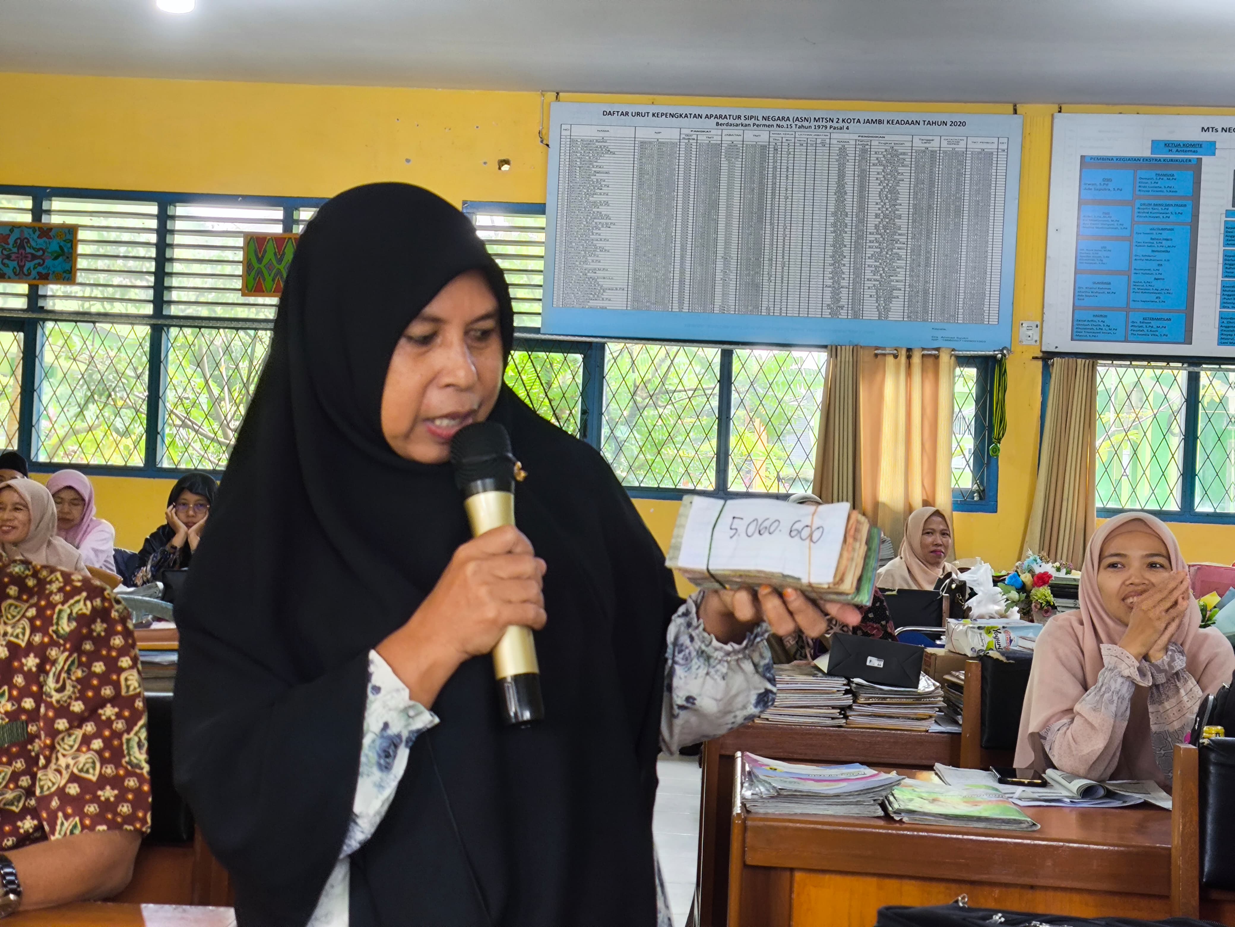 Sebagai bentuk solidaritas dan empati, MTsN 2 Kota Jambi menggalang dana dari seluruh warga madrasah, termasuk siswa, guru, dan tenaga kependidikan. Penggalangan dana dilakukan secara sukarela dan seikhlasnya untuk meringankan beban para korban yang terdampak banjir.Dari hasil penggalangan dana yang dilakukan, terkumpul sejumlah Rp5.815.100,- yang akan disalurkan melalui jalur resmi guna memastikan bantuan sampai kepada yang berhak.
