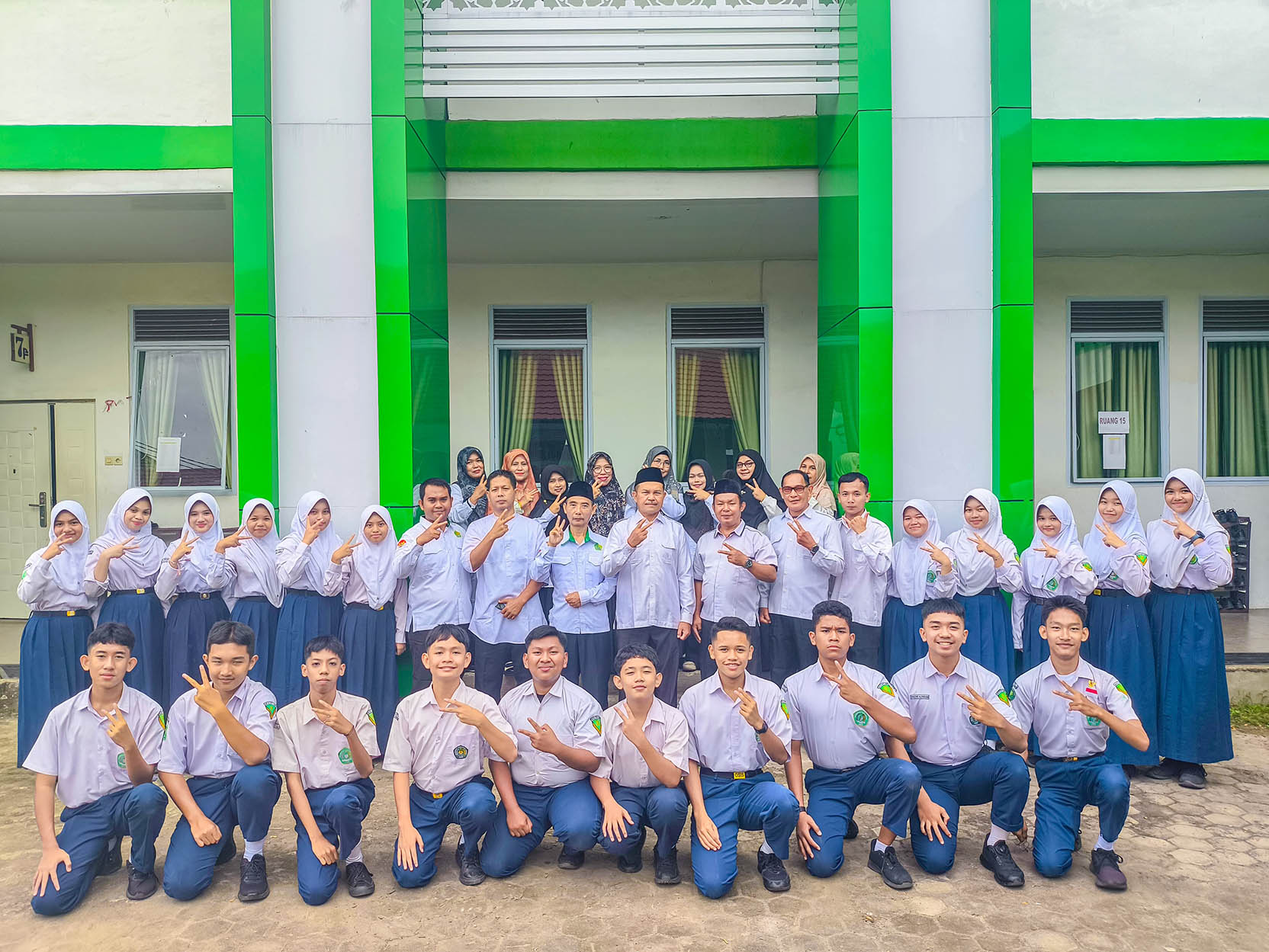 Kepala Madrasah, Drs. Ahmad Syukri turut hadir bersama wali kelas serta guru pembimbing yang selama ini mendampingi perjuangan mereka. Acara foto bersama ini menjadi bentuk apresiasi dan doa restu dari seluruh civitas MTsN 2 Kota Jambi atas pencapaian luar biasa para peserta didik.