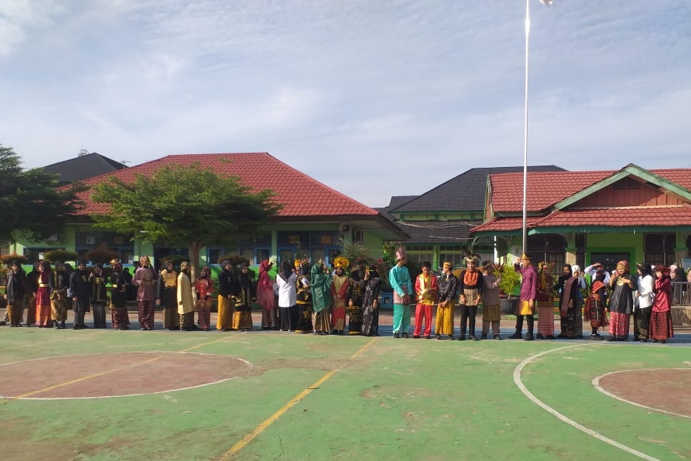 Peringatan Harkitnas di MTsN 2 Kota Jambi diawali dengan upacara bendera yang diikuti seluruh siswa dan guru. Yang menarik, para siswa hadir dengan mengenakan pakaian adat dari berbagai suku di Indonesia. Warna-warni busana tradisional tersebut menjadi simbol nyata keberagaman yang menyatu dalam semangat persatuan. Partisipasi aktif siswa dalam mengenakan baju adat mencerminkan semangat bangkit sebagai generasi muda yang bersahaja dan mencintai budaya sendiri.