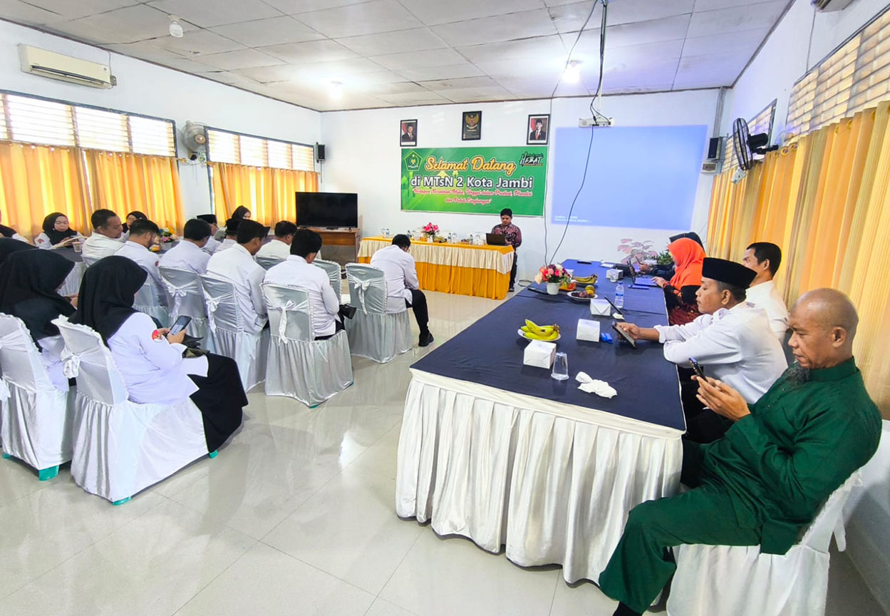 Kota Jambi (MTsN 2) - Kantor Wilayah Kementerian Agama Provinsi Jambi menggelar Bimbingan Teknis (Bimtek) penggunaan aplikasi e-Kinerja untk Aparatur Sipil Negara (ASN) dari berbagai jabatan fungsional, termasuk guru dan pegawai MTsN 2 Kota Jambi. Kegiatan ini dilaksanakan secara luring di lingkungan MTsN 2 Kota Jambi selama tiga hari, yaitu pada 20 hingga 22 Mei 2025.