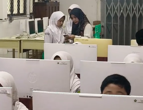 Siswa yang mengalami kendala teknis diberikan bantuan langsung di ruang panitia, sementara beberapa lainnya diarahkan menggunakan komputer yang disediakan oleh madrasah.