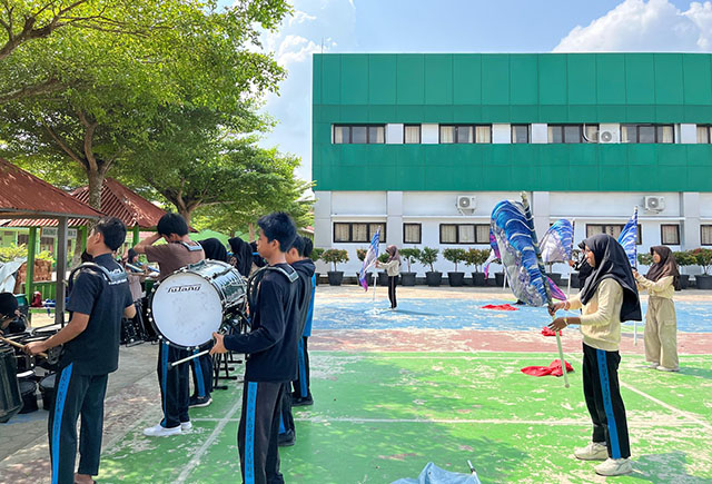 Sementara itu, dari tim Hadroh, semangat latihan tampak dari irama rebana yang terus diselaraskan agar tampil memukau saat demos nanti. Drum Band dan Pramuka pun tak kalah serius, menunjukkan disiplin dan kekompakan yang telah menjadi ciri khas mereka.