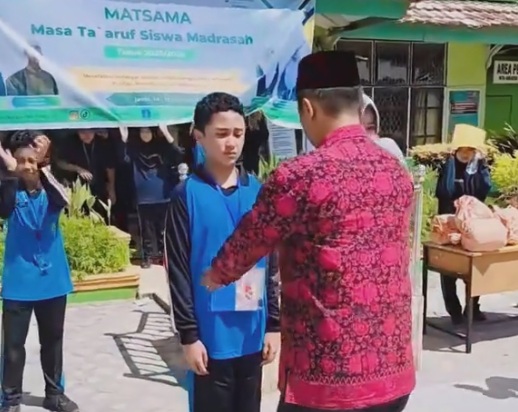 Kota Jambi (MTsN 2) - Masa Ta’aruf Siswa Madrasah (MATSAMA) MTsN 2 Kota Jambi resmi ditutup pada Rabu siang, 16 Juli 2025. Penutupan ditandai dengan prosesi pelepasan tanda peserta atau kokarde oleh Wakil Kepala Madrasah Bidang Kurikulum, Azikri, M.Pd, dan Wakil Kepala Bidang Kesiswaan, Martha Wahyudi, M.Pd.