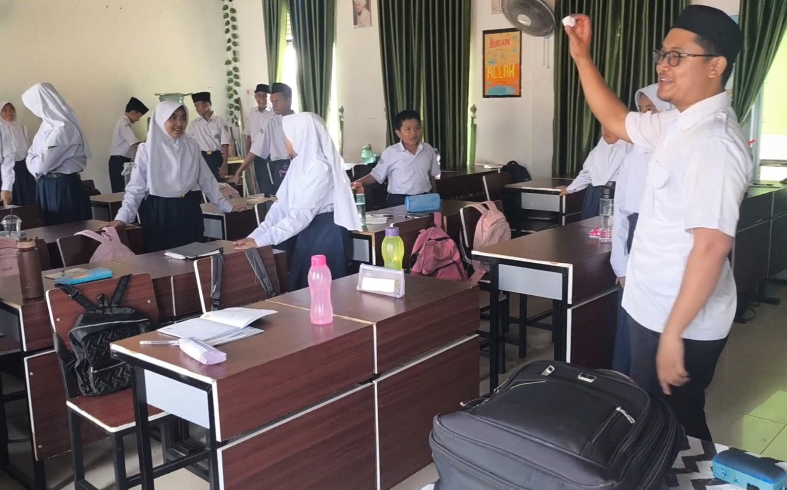 Kota Jambi (MTsN 2) – Selasa (22/7/2025) Kelas 7J dan 7K MTs Negeri 2 Kota Jambi memulai pembelajaran matematika dengan cara yang unik dan penuh kehangatan. Bersama Pak Wahid Kurniawan Suwarji, guru matematika yang dikenal inovatif, siswa diajak untuk membangun suasana kelas yang akrab dan menyenangkan sebelum memasuki materi pelajaran.
