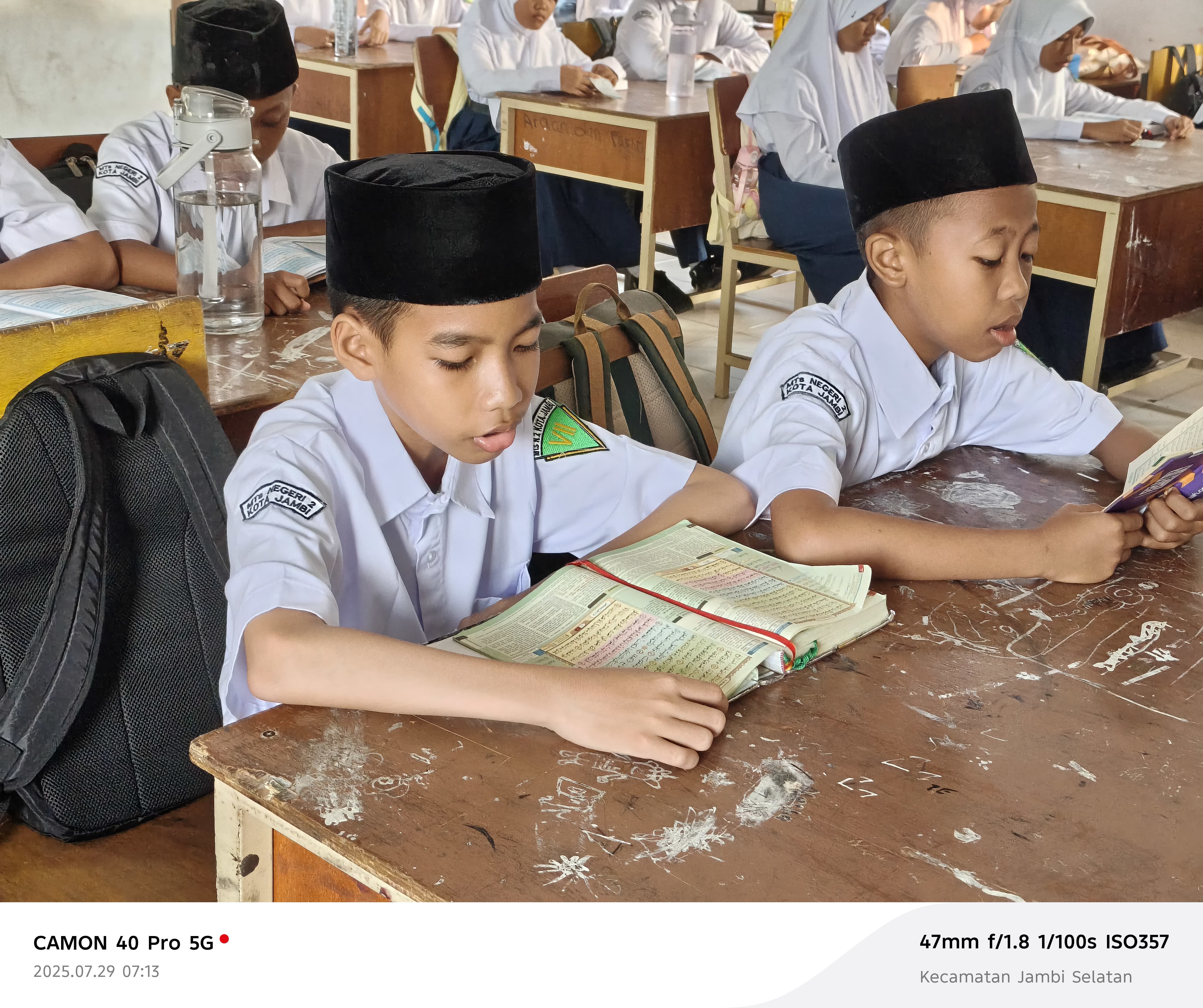 Kota Jambi (MTsN 2) — MTs Negeri 2 Kota Jambi terus meneguhkan komitmennya dalam membentuk generasi berkarakter dan berakhlak mulia melalui pembiasaan membaca Al-Qur’an setiap pagi sebelum kegiatan belajar mengajar dimulai. Tradisi ini bukan sekadar rutinitas, melainkan bagian dari ikhtiar madrasah dalam menanamkan nilai spiritualitas, kedisiplinan, dan ketenangan batin di lingkungan pendidikan.