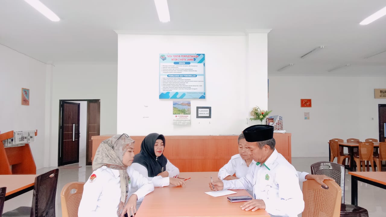 Kota Jambi (MTsN 2) — MTs Negeri 2 Kota Jambi kembali menorehkan langkah strategis dalam penguatan budaya literasi dengan hadirnya Kepala Perpustakaan yang baru, Bapak Damairi. Dengan semangat kolaboratif dan visi literasi yang segar, beliau mulai merancang berbagai program dan pembenahan sistem untuk menjadikan perpustakaan sebagai pusat belajar yang aktif, inklusif, dan inspiratif.
