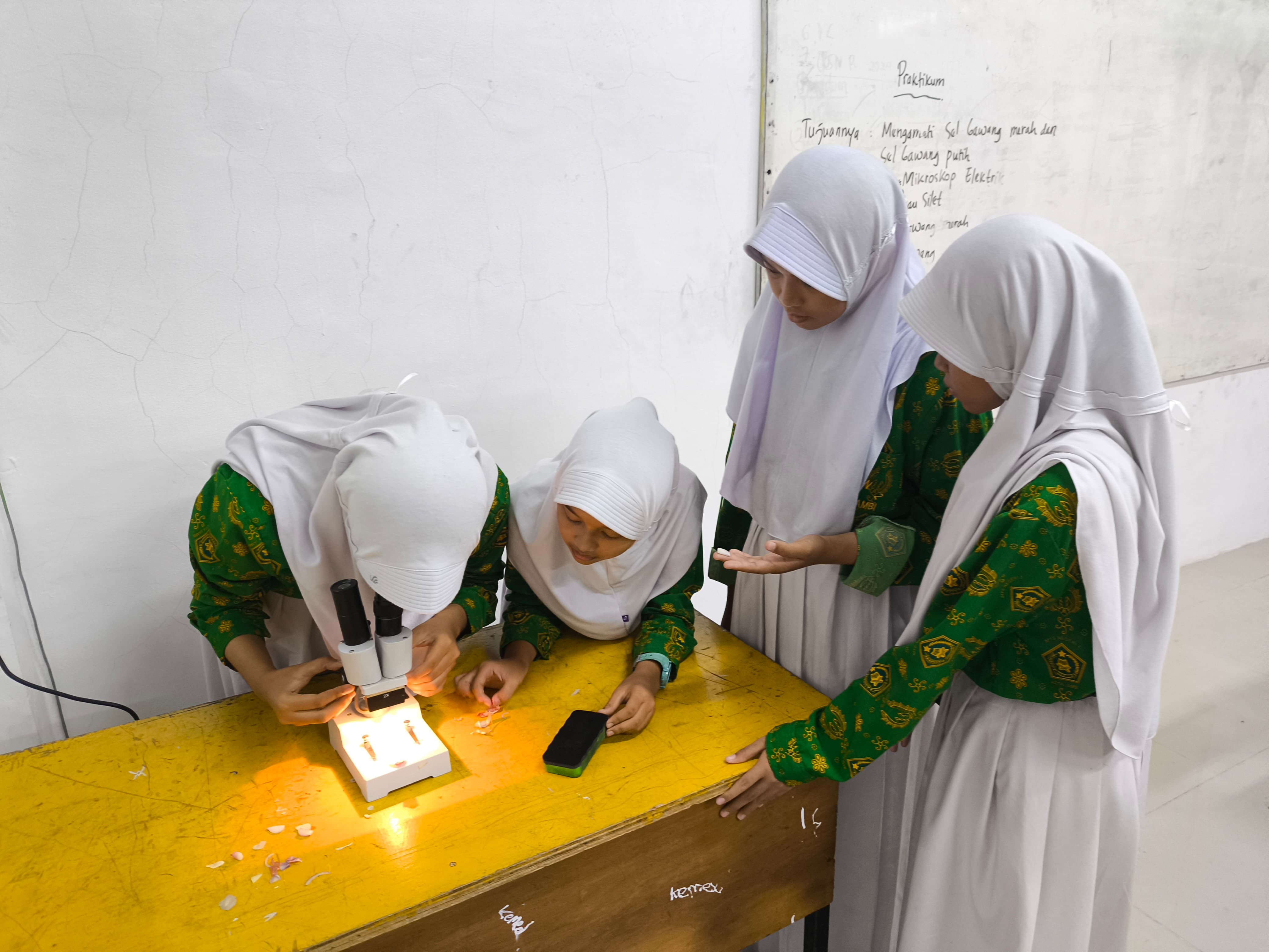 Ibu Rosmiyenti memberikan arahan teknis penggunaan mikroskop, cara menyiapkan preparat, serta penjelasan ilmiah tentang fungsi bagian-bagian sel. “Melalui praktik langsung, siswa tidak hanya memahami teori, tapi juga mengalami proses ilmiah secara nyata,†ujar beliau.
