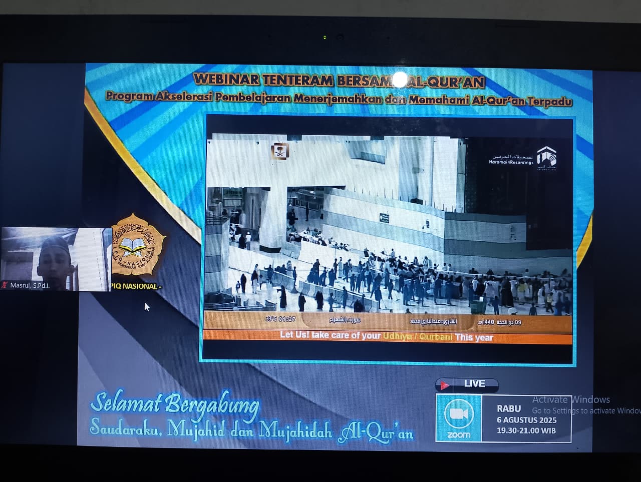 Kota Jambi (MTsN 2) — Dalam upaya memperkuat pemahaman nilai-nilai spiritual dan akhlak Qur’ani, Pak Masrul, Guru Mata Pelajaran Aqidah Akhlak MTsN 2 Kota Jambi, turut serta dalam kegiatan Webinar “Tenteram Bersama Al-Qur’an†yang diselenggarakan secara daring pada Rabu, 6 Agustus 2025.