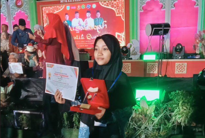 Kota Jambi (MTsN 2) — Prestasi membanggakan kembali ditorehkan oleh Najwa, siswi kelas 7K MTsN 2 Kota Jambi, yang berhasil meraih Juara 3 dalam cabang Hifzil 1 Juz dan Tilawah Anak-Anak Putri pada ajang Musabaqah Tilawatil Qur’an (MTQ) tingkat Kecamatan Jelutung.