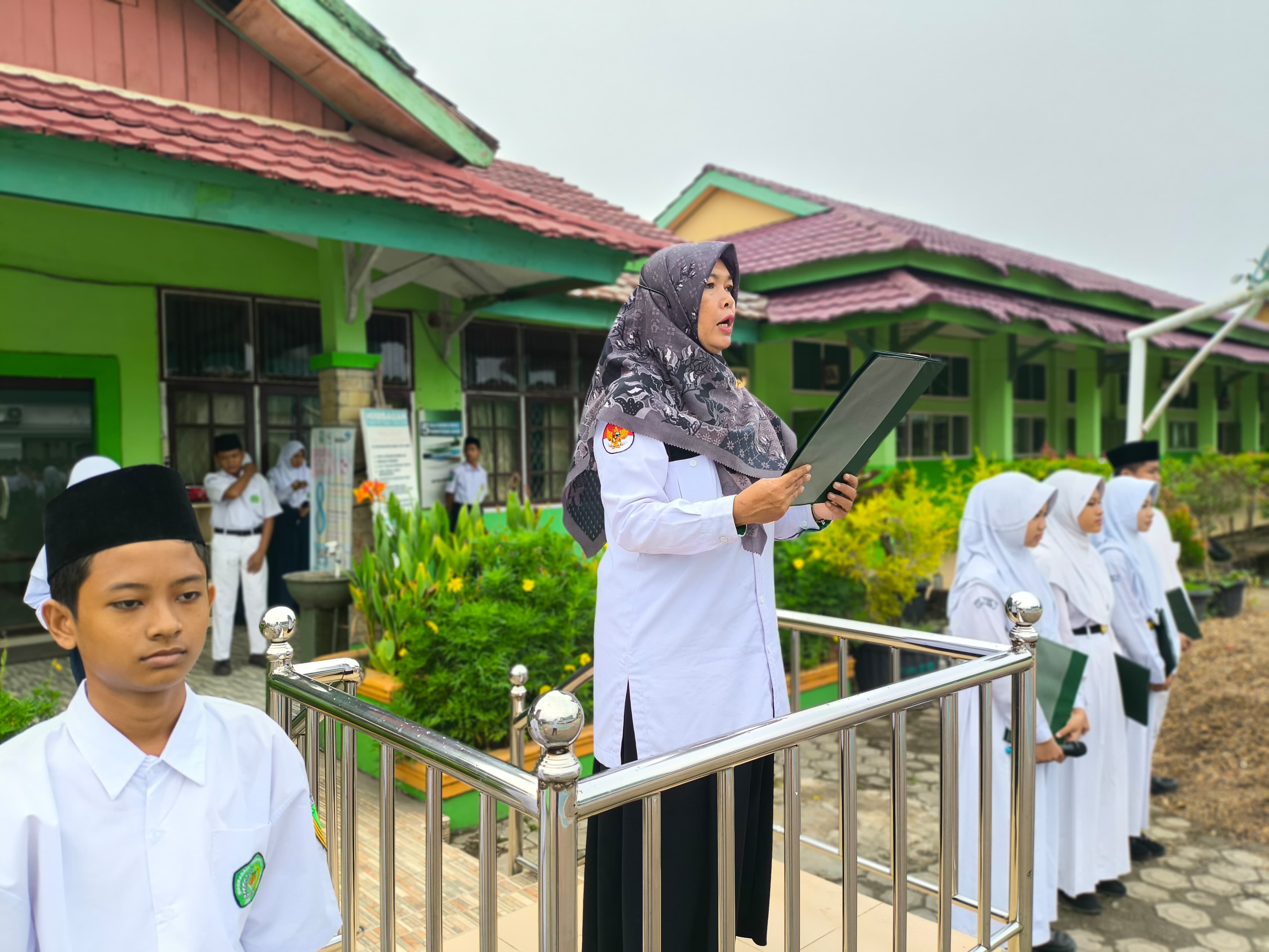 Bertindak sebagai Pembina Upacara, Ibu Rahmah, wali kelas 9H, menyampaikan amanat yang menyentuh dan penuh makna. Dalam pesannya, beliau mengajak seluruh siswa untuk menumbuhkan sikap ikhlas dalam proses belajar dan kehidupan sehari-hari di madrasah.