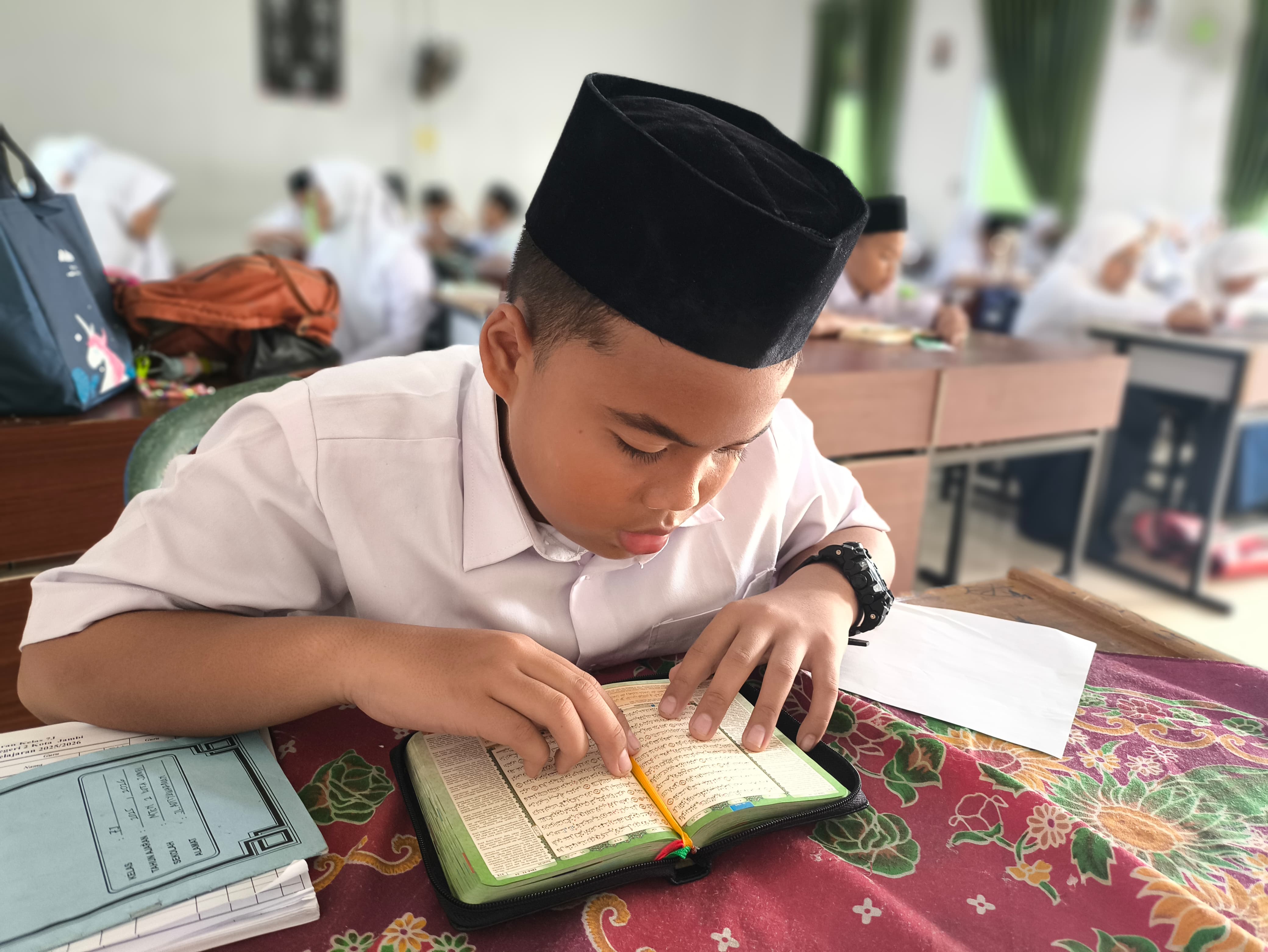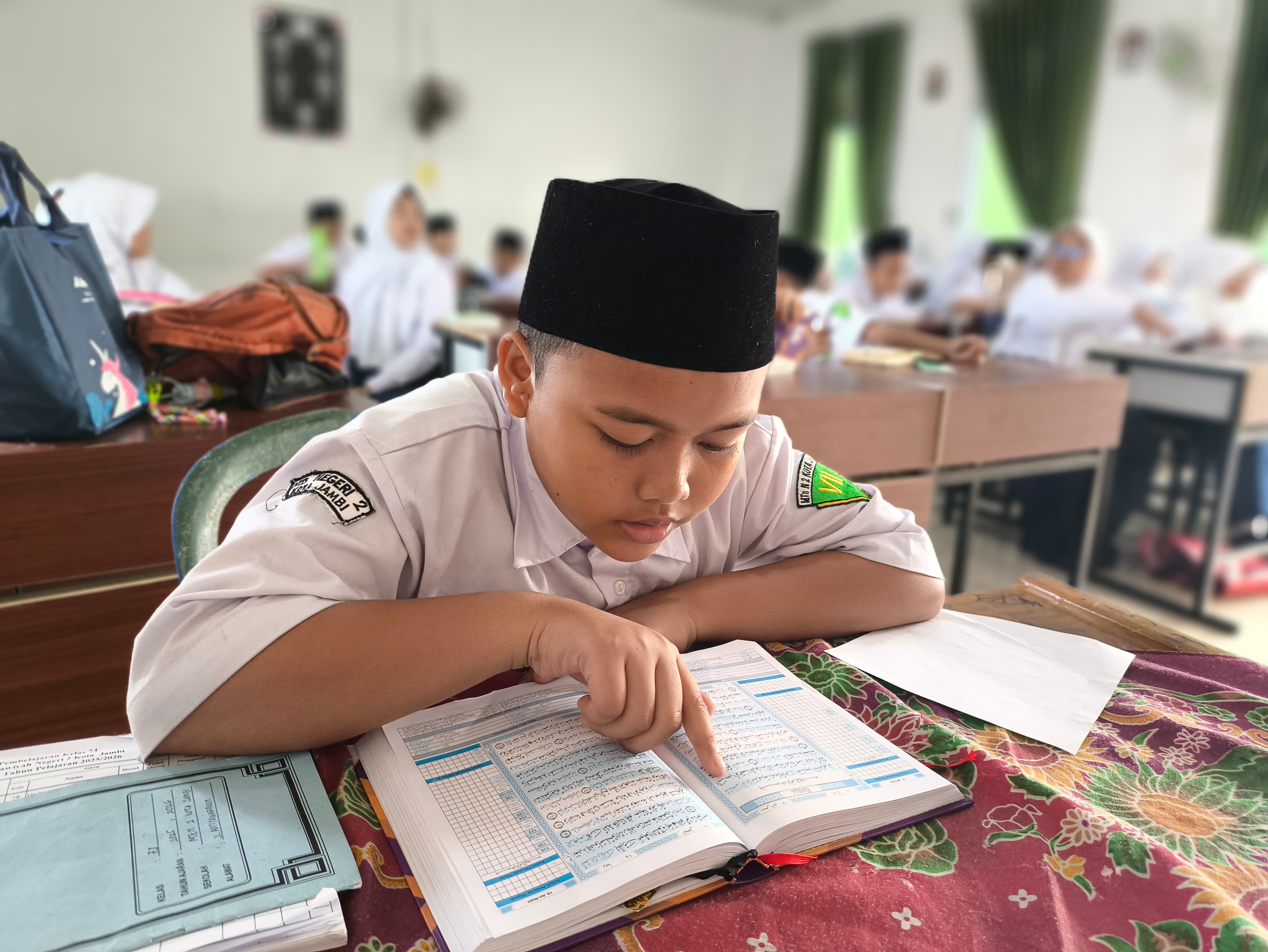 Kota Jambi, 12 Agustus 2025 — Suasana pagi di MTsN 2 Kota Jambi selalu dimulai dengan lantunan ayat suci Al-Qur’an. Sebelum proses pembelajaran dimulai, seluruh siswa melaksanakan pembiasaan membaca Al-Qur’an secara serentak di ruang kelas masing-masing, dipandu oleh wali kelas atau guru mata pelajaran pertama.