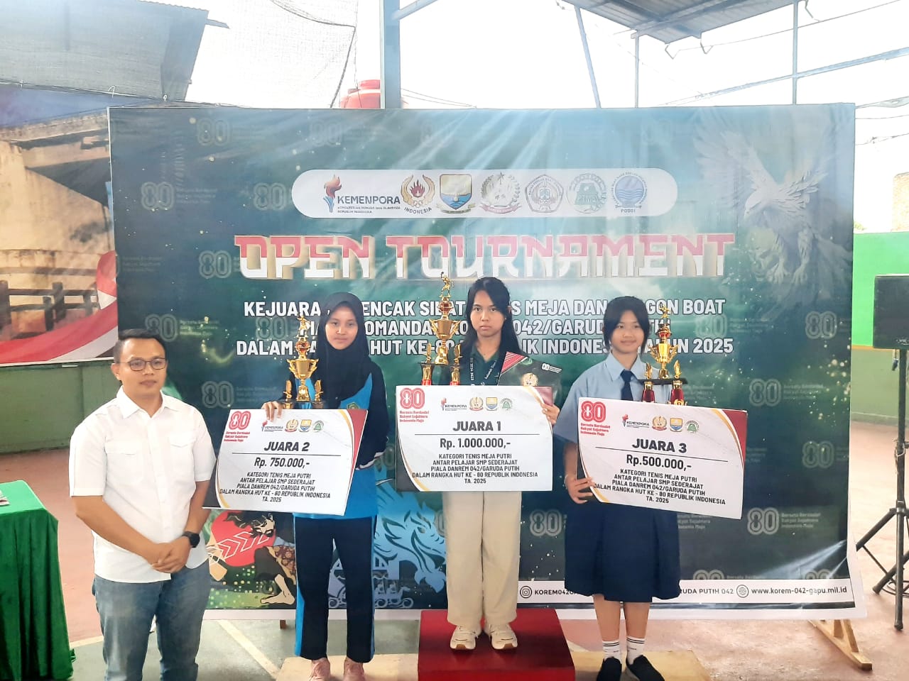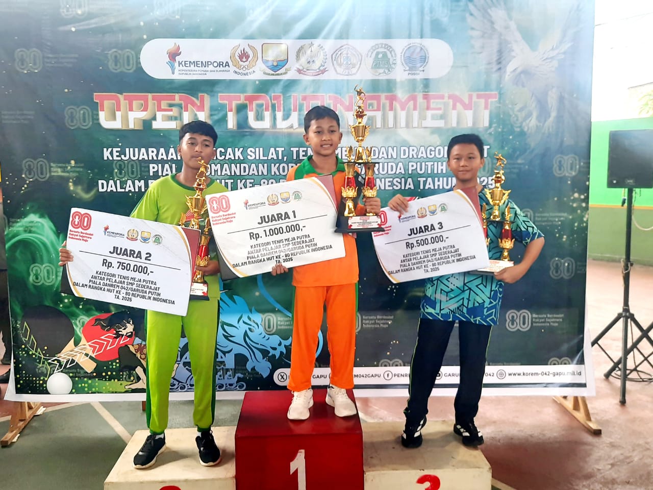 Kota Jambi, 13 Agustus 2025 — Prestasi membanggakan kembali ditorehkan oleh siswa MTsN 2 Kota Jambi dalam ajang Turnamen Tenis Meja Danrem Cup tingkat pelajar SMP/MTs sederajat se-Kota Jambi. Kompetisi ini merupakan bagian dari rangkaian peringatan HUT ke-80 Republik Indonesia yang diselenggarakan oleh Komando Resor Militer (Korem) 042/GAPU.