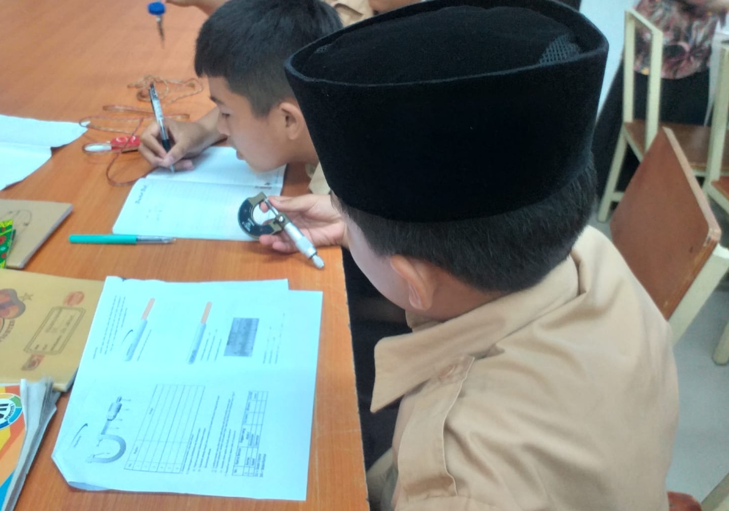 Dalam kegiatan tersebut, siswa berlatih mengukur berbagai benda di sekitar mereka. Dengan menggunakan jangka sorong, siswa mengukur kedalaman botol, diameter dalam dan luar tutup botol, serta diameter koin. Sementara itu, untuk pengukuran benda yang lebih tipis dan kecil, seperti ketebalan kertas serta diameter kabel, digunakan mikrometer sekrup.