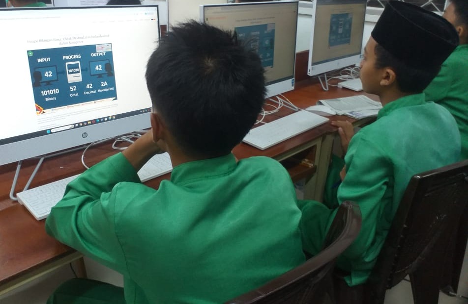 Peserta didik terlihat antusias menjelajahi web madrasah untuk membaca materi dan mengerjakan kuis online. Dengan cara ini, pembelajaran Informatika tidak hanya berlangsung di kelas, tetapi juga meluas di dunia digital yang lebih interaktif. (JLM)