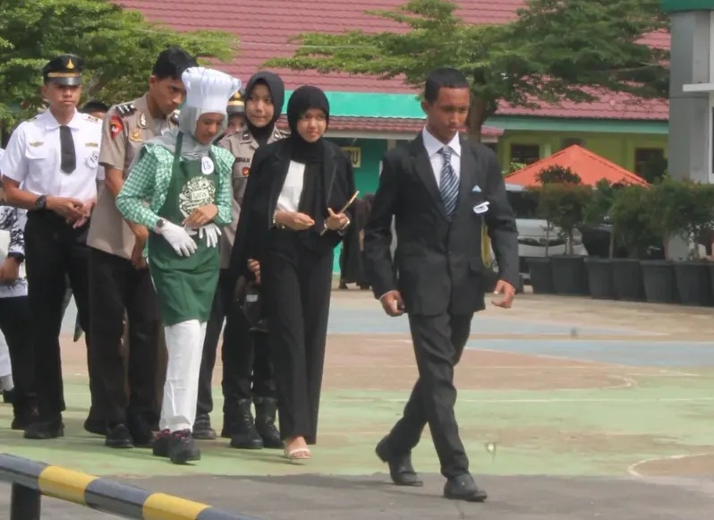 Para siswa tampil penuh percaya diri mengenakan berbagai kostum profesi, mulai dari polisi, TNI, ASN, dokter, perawat, guru, pilot, hingga koki. Kreativitas terlihat dari detail kostum yang dirancang sedemikian rupa, lengkap dengan atribut yang sesuai profesi masing-masing.