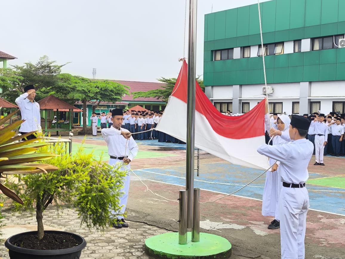 Kota Jambi, Senin, 25 Agustus 2025 — MTsN 2 Kota Jambi kembali melaksanakan upacara bendera rutin dengan penuh khidmat dan semangat nasionalisme. Kegiatan yang digelar di halaman madrasah ini dipimpin oleh petugas upacara dari kelas 9G, yang tampil percaya diri dan kompak dalam menjalankan setiap tugas, mulai dari pengibar bendera, pemimpin barisan, hingga pembaca teks UUD dan janji siswa.