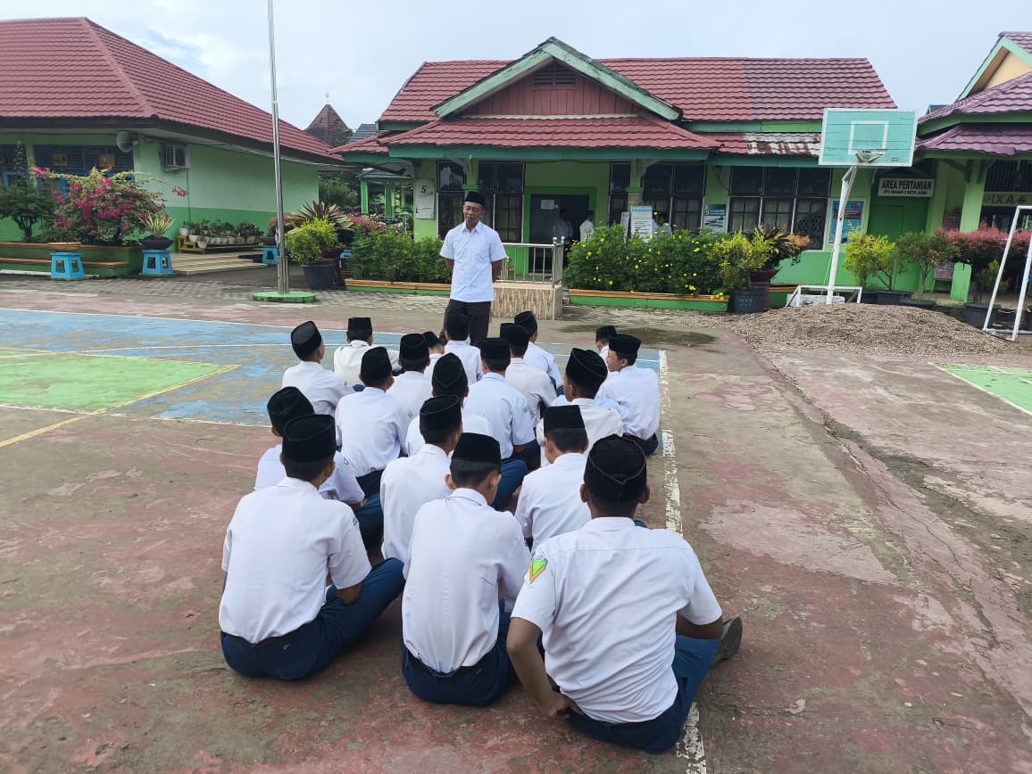 Kota Jambi, Senin (25/08/2025) — Setelah pelaksanaan upacara bendera rutin di halaman MTsN 2 Kota Jambi, Waka Kesiswaan, Bapak Marta, memberikan pembinaan khusus kepada seluruh siswa/i sebagai bagian dari penguatan karakter dan budaya disiplin madrasah.