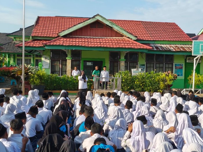 Kota Jambi, Selasa (26/08/2025) — Dalam rangka mendukung kelancaran dan keamanan pelaksanaan program Makan Bergizi Gratis (MBG) di MTsN 2 Kota Jambi, Pembina UKS, Ibu Syarifah Aisyah, memberikan edukasi langsung kepada siswa/i di lapangan sebelum masuk kelas.