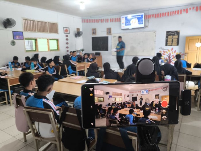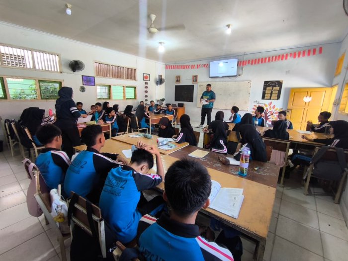Pada sesi pertama, Bapak Ade menyampaikan materi teori bola basket di ruang kelas dengan metode interaktif, menjelaskan konsep dasar permainan, teknik passing, dribbling, dan strategi permainan. Siswa kelas 8K tampak aktif berdiskusi dan mencatat poin-poin penting sebagai bekal untuk praktik.