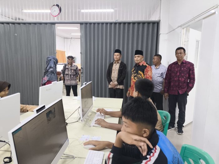 Kegiatan peninjauan berlangsung di Laboratorium Komputer MTsN 2 Kota Jambi, yang telah disiapkan secara optimal untuk mendukung kelancaran asesmen. Kepala Kemenag Kota Jambi didampingi tim teknis madrasah dan proktor lokal, mengecek kesiapan perangkat, jaringan internet, serta kenyamanan ruang asesmen. Beliau juga berdialog langsung dengan peserta ANBK untuk memastikan pelaksanaan berjalan lancar dan sesuai prosedur.