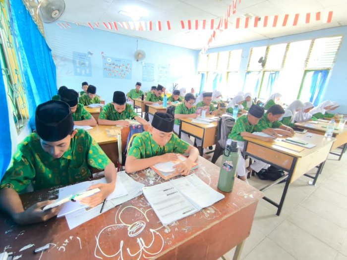 Kota Jambi, Kamis (28/08/2025) — MTsN 2 Kota Jambi terus konsisten menjalankan pembiasaan baik setiap pagi sebelum kegiatan belajar dimulai. Hari ini, giliran kelas 8A yang ktim Humas liput sedang melaksanakan membaca Al-Qur’an bersama di dalam kelas, dipandu oleh guru yang mengajar jdi jam pertama dan disambut dengan suasana khusyuk serta penuh semangat.