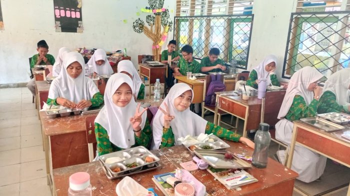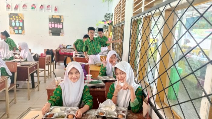 Suasana kelas 8E pagi ini dipenuhi semangat dan antusiasme siswa menyambut program Makan Bergizi Gratis (MBG). Paket makanan bergizi yang dibagikan langsung ke meja siswa membuat suasana belajar terasa lebih hangat dan menyenangkan.