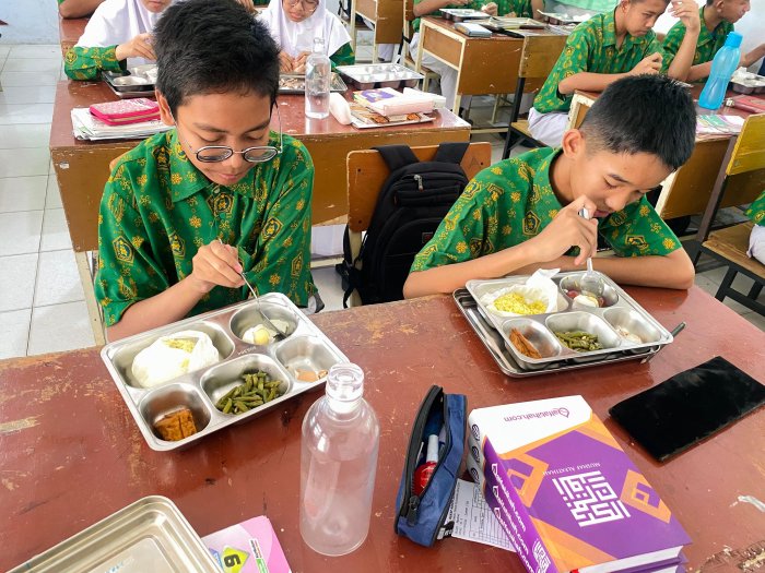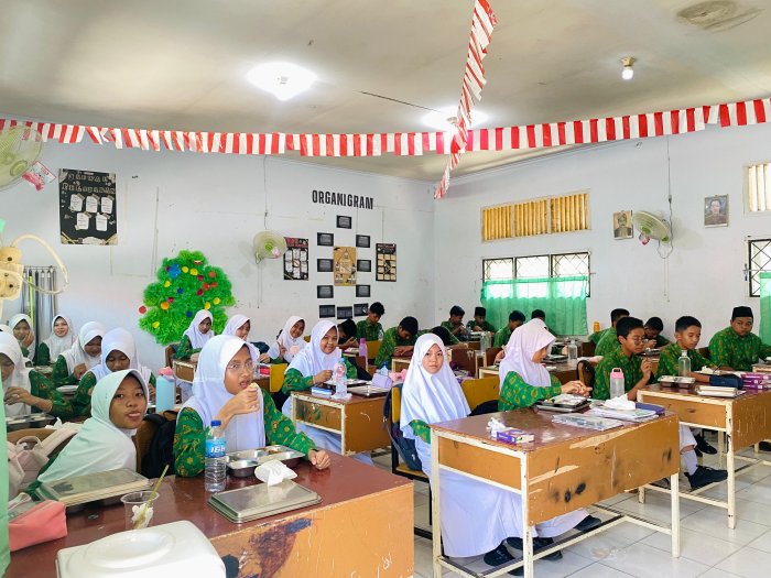 Kegiatan MBG di kelas 9J hari ini memperlihatkan bahwa program ini bukan sekadar pemenuhan gizi, tetapi juga sarana membentuk budaya hidup sehat dan tanggung jawab. Semangat siswa dalam menjaga ketertiban dan kebersamaan menjadi bukti bahwa madrasah terus menanamkan nilai-nilai positif secara konsisten. (WKS)