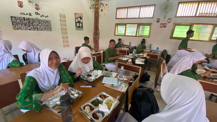 Kota Jambi, Kamis (28/08/2025) — Kelas 9I MTsN 2 Kota Jambi melaksanakan kegiatan Makan Bergizi Gratis (MBG) dengan suasana tertib dan penuh kesadaran. Siswa langsung menata ruang kelas dan menyambut paket makanan bergizi yang telah disiapkan oleh tim madrasah.