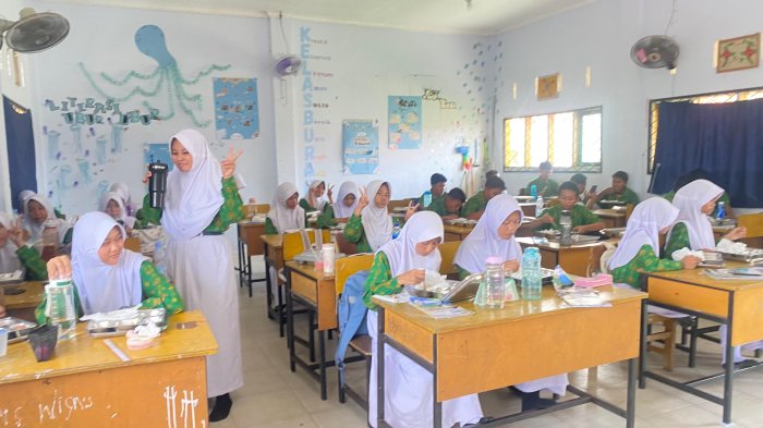 Kegiatan MBG di kelas 9H hari ini memperlihatkan bahwa program ini bukan sekadar pemenuhan gizi, tetapi juga sarana membentuk budaya hidup sehat dan tanggung jawab. Semangat siswa dalam menjaga ketertiban dan kebersamaan menjadi bukti bahwa madrasah terus menanamkan nilai-nilai positif secara konsisten. (WKS)