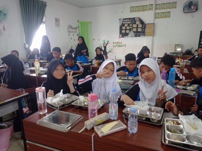Kota Jambi, Kamis (28/08/2025) — Kegiatan Makan Bergizi Gratis (MBG) di kelas 7I MTsN 2 Kota Jambi berlangsung tertib dan penuh semangat. Sejak pagi, siswa telah menata ruang kelas dengan rapi, menunjukkan kesiapan menyambut program rutin yang mendukung kesehatan dan konsentrasi belajar.