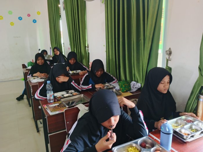 Kegiatan MBG di kelas 7J tidak hanya menjadi momen makan bersama, tetapi juga sarana pembentukan budaya hidup sehat, disiplin, dan saling peduli. Semangat siswa dalam mengikuti program ini mencerminkan komitmen madrasah dalam membangun generasi yang kuat secara fisik dan tangguh secara mental. (WKS)