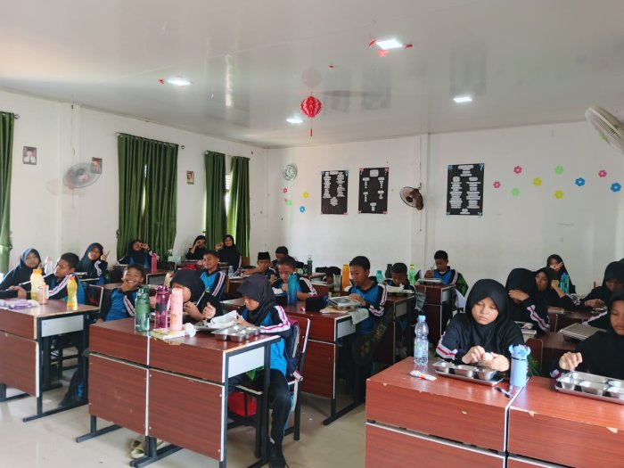 Kota Jambi, Kamis (28/08/2025) — Kelas 7J MTsN 2 Kota Jambi melaksanakan kegiatan Makan Bergizi Gratis (MBG) dengan suasana tertib dan penuh antusiasme. Siswa tampak bersemangat menata ruang kelas dan menyambut paket makanan bergizi yang telah disiapkan oleh tim madrasah.