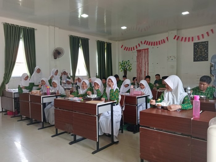 Kota Jambi, Kamis (28/08/2025) — Kelas 7G MTsN 2 Kota Jambi melaksanakan kegiatan Makan Bergizi Gratis (MBG) dengan penuh semangat dan kedisiplinan. Sejak pagi, siswa telah bersiap menata ruang kelas dan menyambut paket makanan bergizi yang disiapkan oleh tim madrasah.