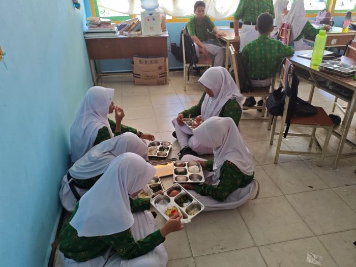 Kota Jambi, Kamis (28/08/2025) — Kegiatan Makan Bergizi Gratis (MBG) kembali digelar di MTsN 2 Kota Jambi, kali ini menyapa siswa kelas 8C dengan penuh semangat dan antusiasme. Sejak pagi, siswa telah menunjukkan kesiapan mereka dengan menata ruang kelas secara mandiri dan menjaga kebersihan lingkungan belajar.