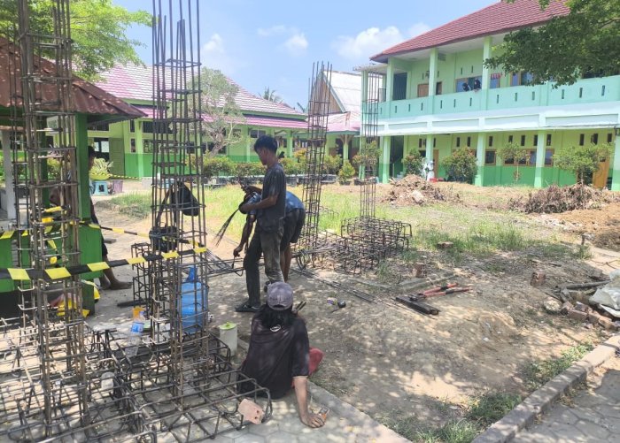 Kota Jambi (MTsN 2) - Pembangunan Panggung Kreasi di MTsN 2 Kota Jambi terus menunjukkan perkembangan signifikan. Setelah sebelumnya dilakukan tahap penggalian, kini proses berlanjut ke pembuatan besi untuk pondasi cakar ayam yang menjadi penopang utama konstruksi.