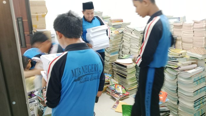 Kota Jambi, Rabu (27/08/2025) — Pengurus perpustakaan MTsN 2 Kota Jambi bersama siswa-siswi melaksanakan kegiatan pengelolaan koleksi pustaka dengan semangat kolaboratif. Kegiatan ini berlangsung di ruang perpustakaan dan area gudang penyimpanan madrasah.