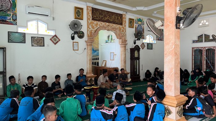 Kota Jambi, Jumat (29/08/2025) — Tim hadroh Shohibul Muslimin MTsN 2 Kota Jambi melaksanakan latihan rutin di Masjid madrasah pada Jumat siang. Kegiatan ini menjadi bagian dari agenda mingguan yang bertujuan memperkuat kekompakan dan memperindah harmoni irama. Suasana latihan berlangsung khidmat dengan semangat syiar Islam yang terasa kuat.