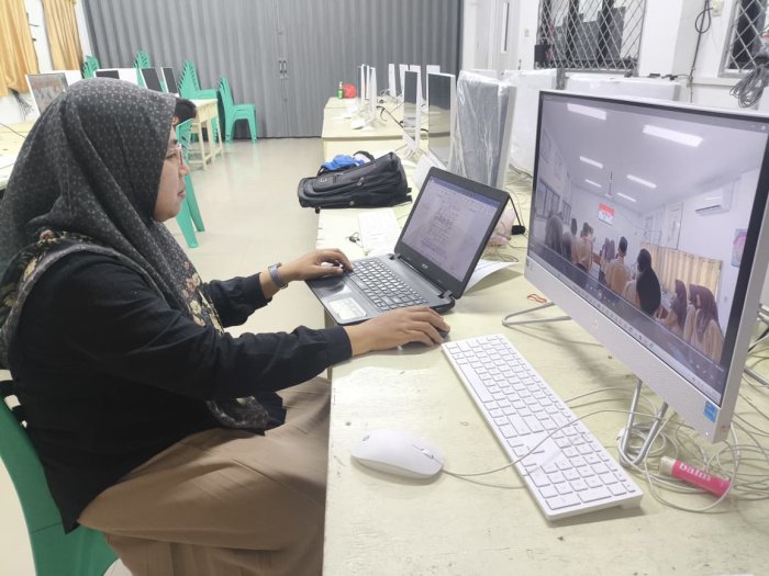 Kota Jambi, Jumat (29/08/2025) — Ibu Fauziah, guru MTsN 2 Kota Jambi, melaksanakan kegiatan lembur di Laboratorium Komputer madrasah. Fokus utama kegiatan mencakup pengeditan video pembelajaran dan penyusunan modul ajar sebagai bagian dari persiapan Uji Kinerja (UKIN).
