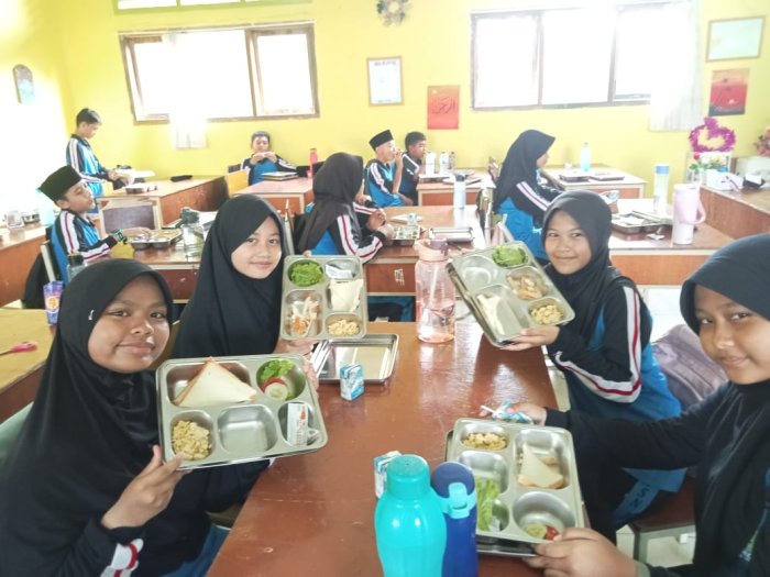 Salah satu siswa kelas 7D, Mira Zulfa Khairiyah, menyampaikan kesan positif terhadap kegiatan MBG. “Alhamdulillah, makanannya enak dan sehat. Saya suka telur orak-ariknya, dan susu kotaknya bikin tambah semangat. Setelah sarapan, saya jadi lebih fokus ikut pelajaran,” ujar Mira dengan senyum ceria. Komentar tersebut mencerminkan antusiasme siswa terhadap program yang mendukung kesehatan dan semangat belajar.