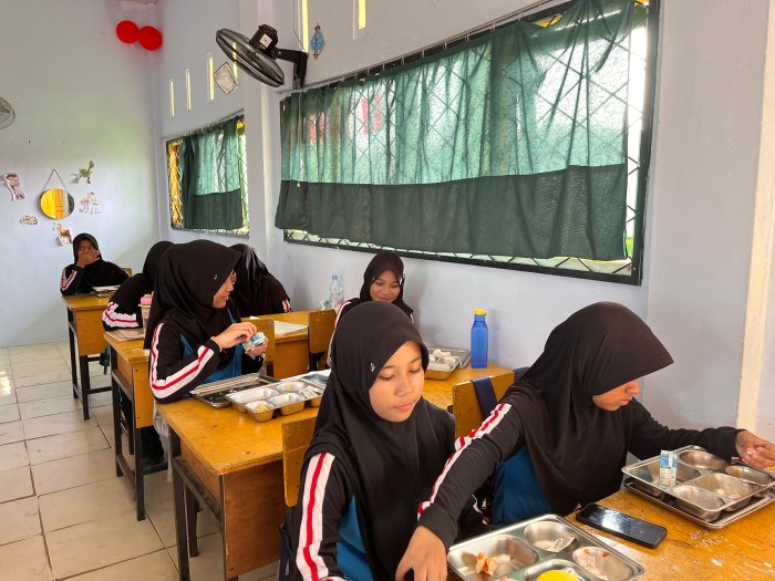 Pak Amir Mahmud, guru Matematika yang mengajar di kelas 9G saat MBG berlangsung, turut memberikan pandangan. “Saya melihat suasana kelas jauh lebih kondusif setelah anak-anak sarapan. Mereka lebih responsif saat diskusi dan lebih cepat memahami materi. MBG ini bukan hanya soal makan, tapi soal membangun ritme belajar yang sehat,” ungkap beliau dengan penuh apresiasi.